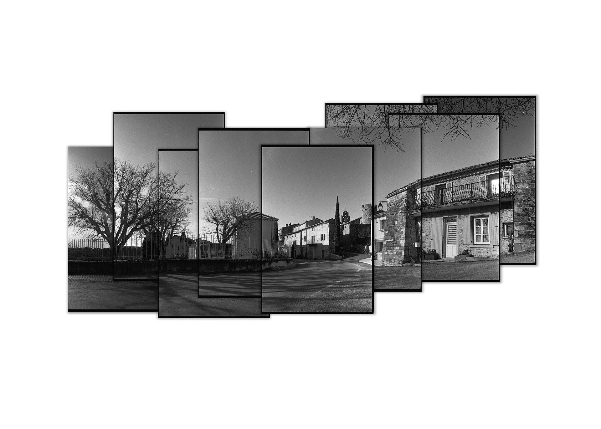 A história é contada por recortes, sejam eles escritos ou visuais. Foi com essa inspiração que localizei paisagens eternizadas de cartões postais antigos da região, abrindo uma reflexão da ocupação homem e espaço e sua transformação no tempo. Essa pesquisa se chama "observatório da paisagem", feita com o ato de caminhar, e se concentrou nas cidades de Taulignan, Rousset-les-Vignes e arredores.