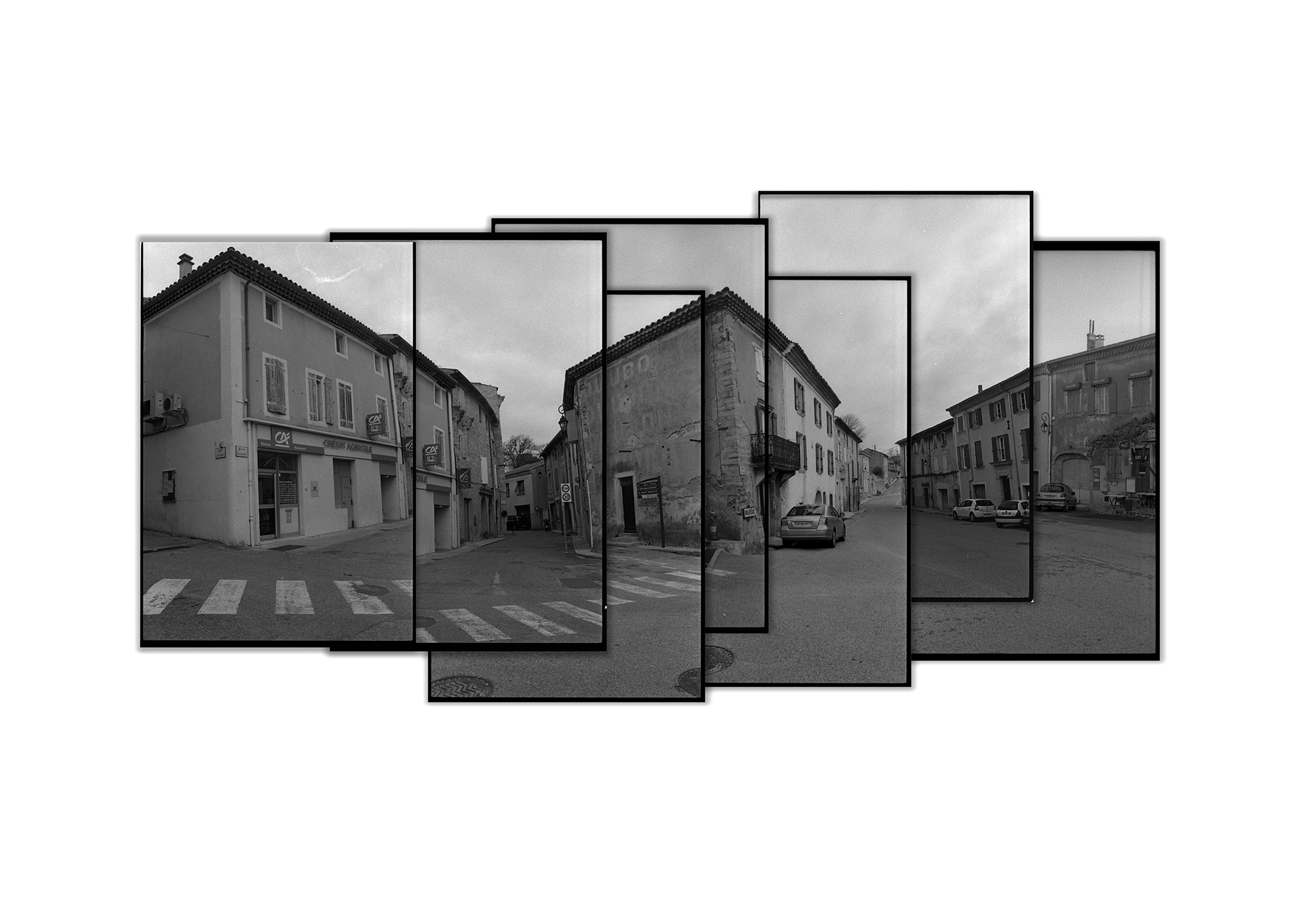 A história é contada por recortes, sejam eles escritos ou visuais. Foi com essa inspiração que localizei paisagens eternizadas de cartões postais antigos da região, abrindo uma reflexão da ocupação homem e espaço e sua transformação no tempo. Essa pesquisa se chama "observatório da paisagem", feita com o ato de caminhar, e se concentrou nas cidades de Taulignan, Rousset-les-Vignes e arredores.